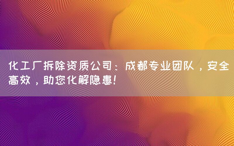 化工厂拆除资质公司:成都专业团队,安全高效,助您化解隐患!