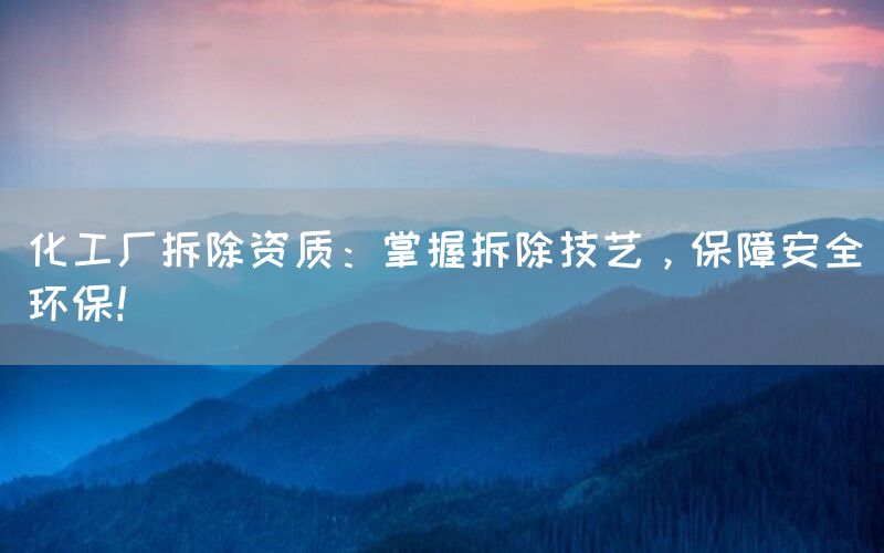 化工厂的拆除是一项复杂而危险的任务,需要专业的知识和技术来确保安全和环境保护。在进行化工厂拆除之前,必须获得相应的资质才能合法进行操作。将介绍化工厂拆除资质所涉及的技艺,并强调其对安全和环境保护的重要性。