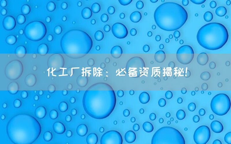 化工厂拆除是一项复杂而危险的任务,需要专业的团队和合适的资质才能顺利进行。将揭秘化工厂拆除所需的必备资质,帮助您了解该领域,并为您提供相关信息。