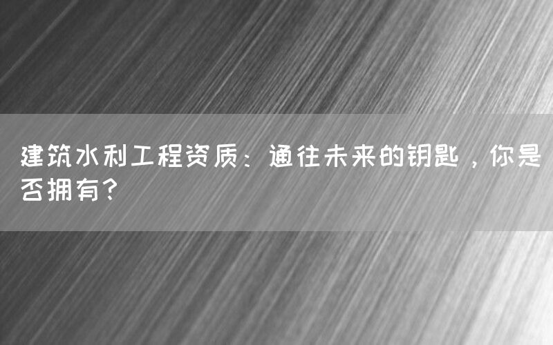 建筑水利工程资质:通往未来的钥匙