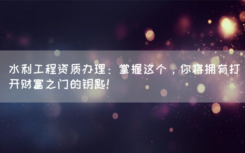 水利工程是指为了解决水资源的合理利用和管理而进行的各种工程建设和技术措施。在现代社会中,随着城市化进程的加快以及人们对水资源需求的不断增长,水利工程行业迎来了前所未有的发展机遇。,在这个竞争激烈且专业性要求较高的行业中,拥有相关资质将成为成功立足和获得更多商机的关键。