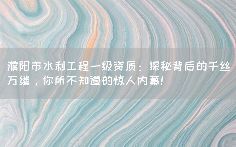 揭开背后的惊人内幕:行业竞争与技术创新,在濮阳市水利工程一级资质背后隐藏着许多人们所不知道的惊人内幕。首先是行业竞争问题。由于该资质代表着较高技术实力和经验,因此申报难度较大,并且存在一定数量限制。这导致了濮阳市水利工程企业之间的激烈竞争,争夺资质成为了一场你争我夺的战斗。
