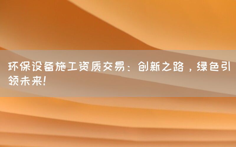 环保设备施工资质交易是推动行业发展、实现绿色引领未来的重要一环。通过资质合作、项目联营、化工拆除项目合作、环保项目合作以及资质分离等方式,企业可以在市场竞争中取得优势,并为客户提供更好的服务。