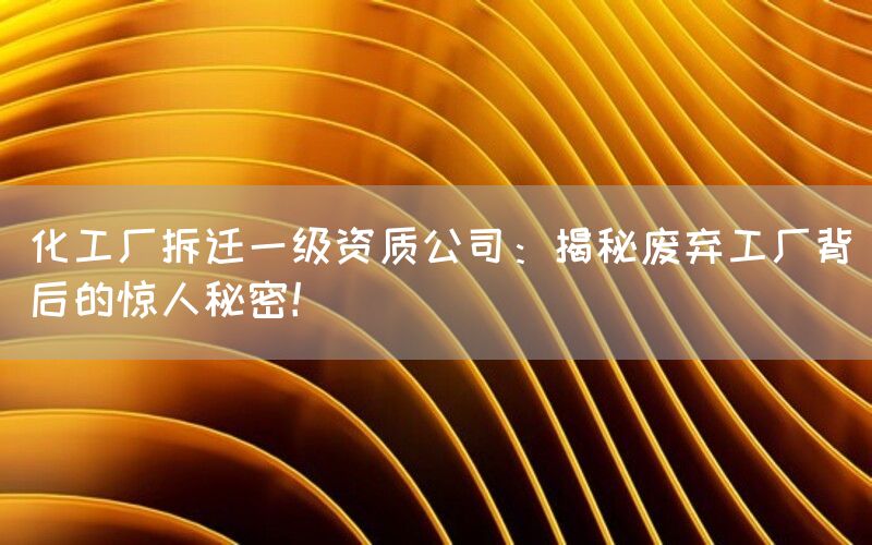 废弃工厂是指因各种原因而停止运营并被遗弃的工业设施。这些废弃工厂往往具有悠久的历史和丰富的文化价值,但同时也隐藏着一些令人震惊的秘密。本文将深入探讨化工厂拆迁一级资质公司所揭示出来的废弃工厂背后真实而令人不安的事实。