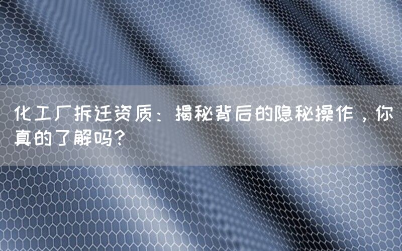 化工厂拆迁是一个复杂而敏感的过程,涉及到大量的法律、环境和安全等方面的问题。在这个过程中,拥有合适的拆迁资质是至关重要的。本文将深入探讨化工厂拆迁资质背后的隐秘操作,并介绍巴洛仕集团有限公司提供一站式解决企业资质问题服务。