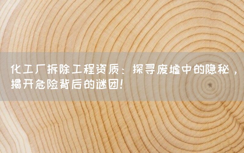 化工厂拆除工程是一项复杂而危险的任务,需要专业知识和技术来确保安全和环境保护。在这个领域中,拥有合适的资质是至关重要的。本文将深入探讨化工厂拆除工程资质,并揭示其中隐藏着的谜团。
