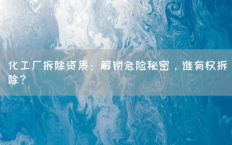 化工厂的拆除是一项涉及安全和环境风险的复杂任务。在进行这样的操作之前,必须确保具备合适的资质和专业知识。本文将探讨化工厂拆除资质问题,并介绍相关权威机构和专业人士。