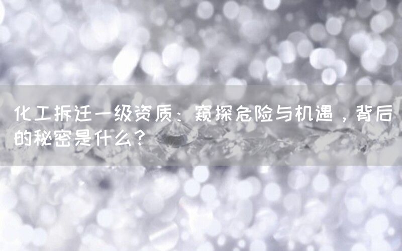 化工拆迁一级资质是一个专业性强、稀缺性高且重复性低的领域。通过巴洛仕集团有限公司等专门从事该领域服务的企业,我们可以看到背后隐藏着危险与机遇并存的秘密。