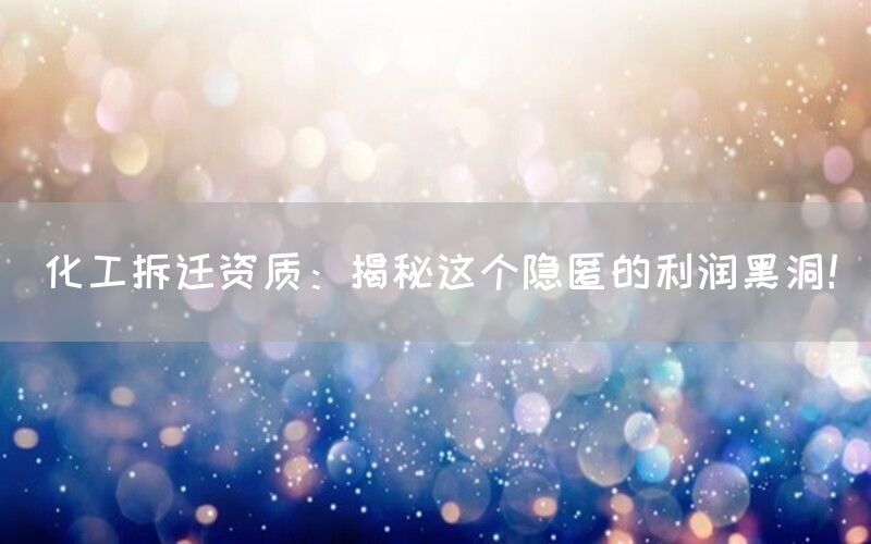 化工行业作为国民经济的重要支柱产业之一,其发展不仅带动了经济增长,也给环境带来了巨大压力。为了保护生态环境和人民健康,政府部门对于不符合环保标准的化工企业进行拆迁是必然选择。在这个看似正义的行动背后隐藏着一个利润黑洞。