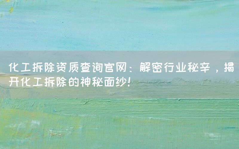 如何查询化工拆除资质?如果您想从事化工拆除行业或者是企业主希望找到合格可靠的化工拆除服务商,在查询资质时可以参考以下步骤: