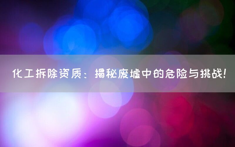 化工拆除是一项高风险、高技术要求的工作,涉及到废墟中存在的各种危险物质和复杂环境条件。在进行化工拆除之前,必须了解并应对这些危险与挑战。本文将深入探讨废墟中的危险因素,并介绍化工拆除资质服务提供商巴洛仕集团有限公司。