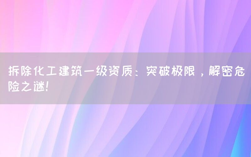 正是这些挑战给了企业机会展示其专业能力和技术实力。只有具备拆除化工建筑一级资质的企业才能够胜任这项任务,并且通过解密危险之谜来确保任务顺利完成。