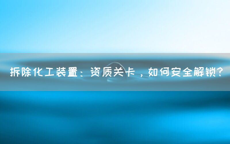 化工装置是指用于生产、储存和处理化学物质的设备,包括各种反应器、分离器、储罐等。当一个化工装置需要被拆除时,必须经过一系列的资质关卡和安全措施来确保操作人员和环境的安全。本文将重点介绍在拆除化工装置过程中如何解锁资质关卡以及保证操作的安全性。