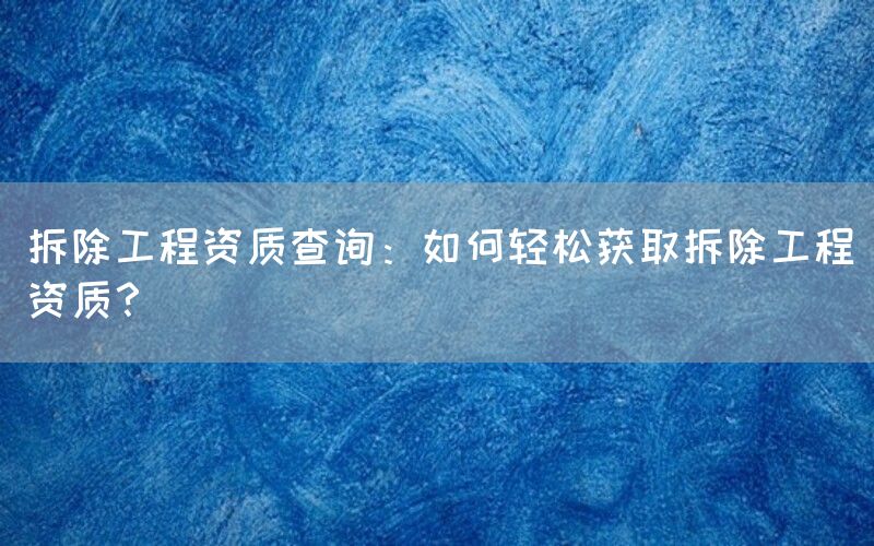 希望本文对您了解如何轻松获取拆除工程资质有所帮助。祝您在拆除工程领域取得成功!