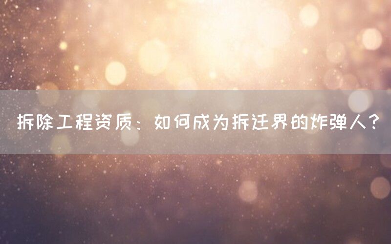 拆除工程是一项需要专业技能和经验的工作,而成为拆迁界的“炸弹人”则需要更加深入的了解和掌握。本文将介绍如何获得拆除工程资质,并成为这个领域中备受认可的专业人士。
