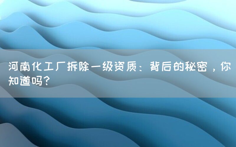 在河南省出现了一个引人注目的事件——一家具有一级资质的化工厂被拆除。这个事件引起了广泛关注,并引发了人们对于背后秘密的好奇与猜测。