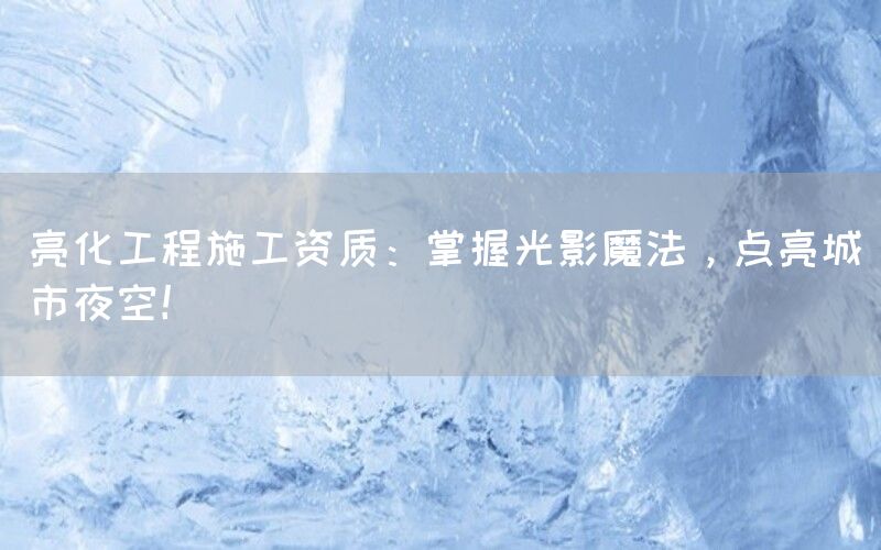 专业资质:保障施工质量与安全亮化工程涉及到电气、结构等多个专业领域,因此必须具备相应的专业资质才能进行施工。这些资质包括电气安装工程专业承包资质、建筑装修装饰工程专业承包资质等。