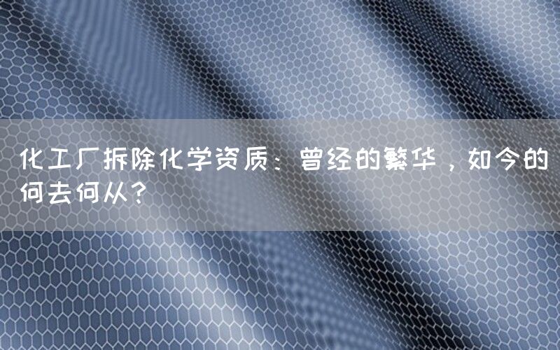 要进行化工厂拆除并非易事。首先需要考虑到该企业所持有的化学资质问题。在过去几十年里,许多国家都建立了一套完善的法律法规体系来监管和管理各类危险品、有毒物质以及涉及公共安全领域等相关行业。这些法规要求企业必须具备相应资质才能从事相关生产活动,并且在关闭或转型时也需要妥善处理已获得或正在申请中的资质。