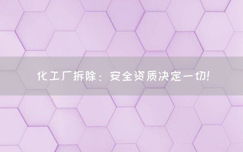 化工厂拆除是一个复杂而危险的过程,需要专业的知识和经验来确保安全进行。在这个过程中,安全资质是至关重要的,它决定着整个拆除过程的顺利进行和风险控制。