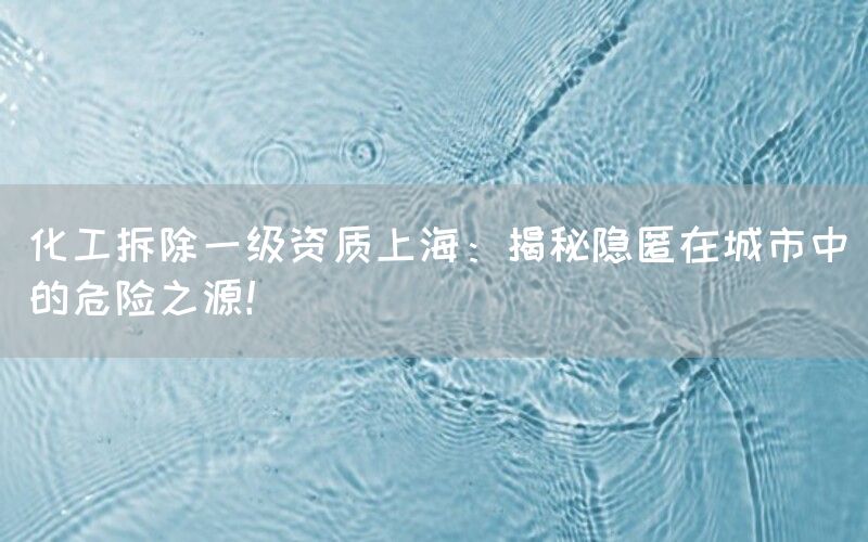 化工拆除一级资质上海:揭秘隐匿在城市中的危险之源!通过巴洛仕集团有限公司等专业服务机构的支持与合作,可以更好地解决化工企业拆除过程中所面临的各种挑战与需求。我们也需要加强城市安全管理和环境保护意识,共同营造一个安全、健康、可持续发展的城市环境。
