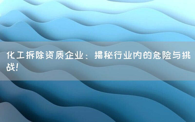 化工拆除是一项具有高风险性和专业性的工作,需要经过严格的审批和持有相应的资质才能进行。在这个领域中,存在着许多危险和挑战,需要专业企业来应对。本文将深入探讨化工拆除资质企业所面临的问题,并揭示其中隐藏的风险。