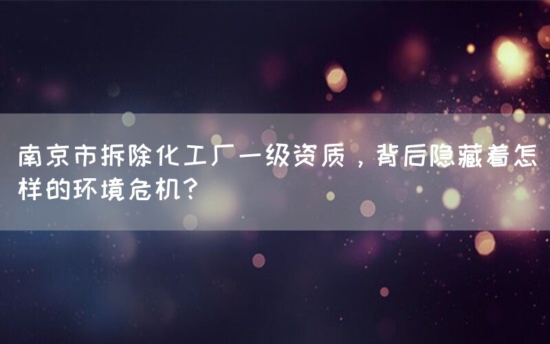 南京市拆除化工厂一级资质的背后环境危机