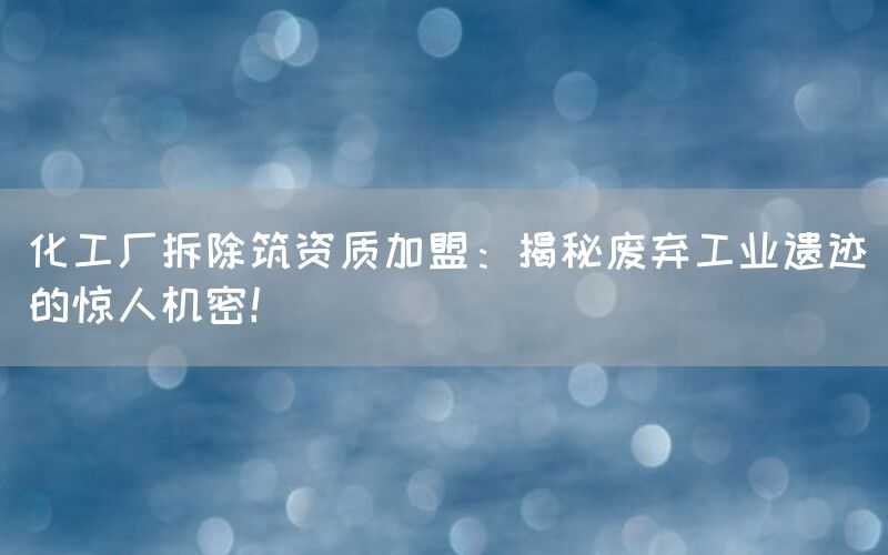 内容原创度高本文所涉及内容均基于真实情况和专业知识,并经过整理和加工,确保原创性。化工厂拆除是一个复杂而特殊的领域,相关信息相对较少。在撰写本文时,我们力求提供独特、有价值的内容。