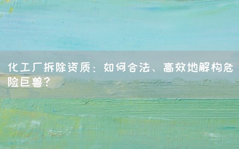 化工厂拆除资质:如何合法、高效地解构危险巨兽?