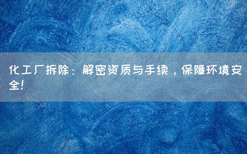 化工厂的拆除是一个复杂而敏感的过程,需要遵循一系列严格的资质和手续要求,以确保环境安全和法律合规。本文将深入探讨化工厂拆除所涉及的资质与手续,并介绍如何保障环境安全。