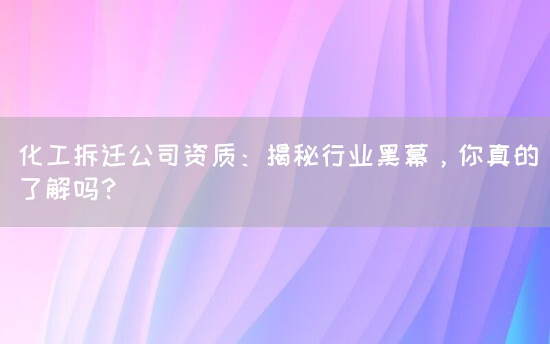 化工拆迁是一个涉及到环境保护和城市规划的重要领域,但同时也存在着一些不为人知的黑幕。在这篇文章中,我们将深入探讨化工拆迁公司资质问题,并揭示其中的内幕。