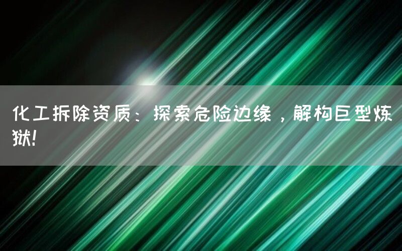 化工拆除是一项高风险的任务,需要专业的知识和技能来应对各种挑战。在这个领域中,我们不仅需要面对复杂的化学物质和设备,还要处理潜在的安全隐患。正是这种危险性使得化工拆除成为一个充满挑战和刺激的领域。
